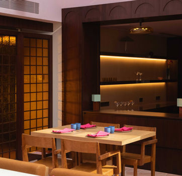 Inspired by Mexican architecture, the Mezkla Restaurant project emphasizes vibrant colors, rich textures, and a deliberate use of light throughout the interior. This design language is extended to the custom-designed furniture, ensuring a cohesive spatial and material identity.